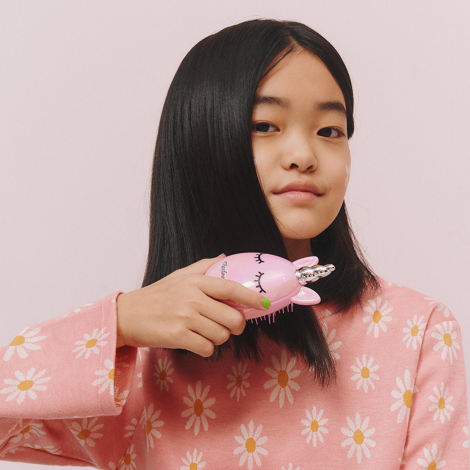 Расческа станет одним их любимых аксессуаров юной модницы: выполнена в виде единорога и окрашена в нежный оттенок. На выбор — нежно-розовый, белый и фиолетовый цвета с перламутровым покрытием. Благодаря компактному размеру расческу удобно держать в детской руке.