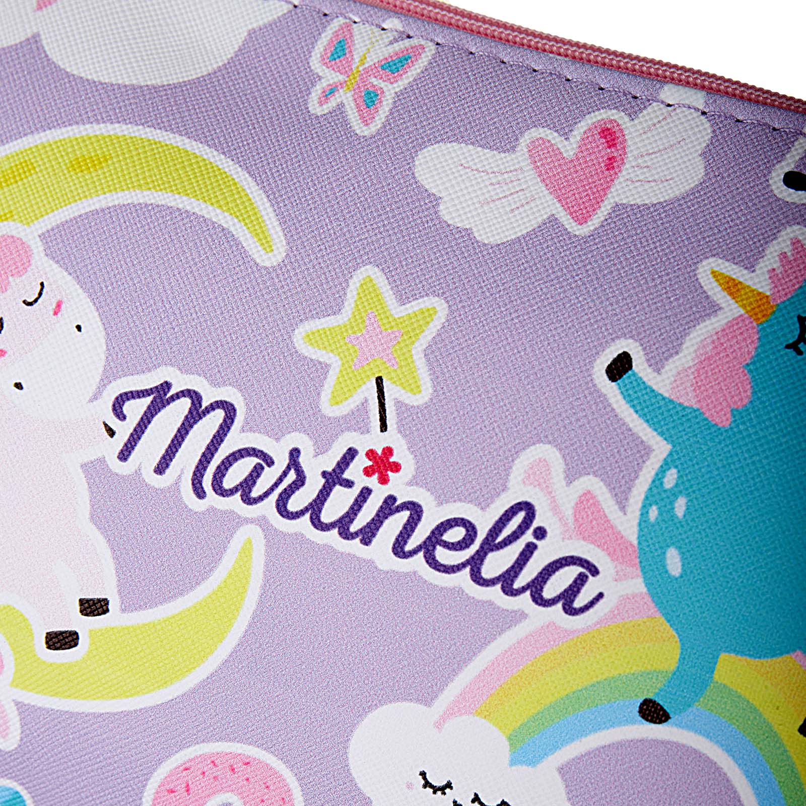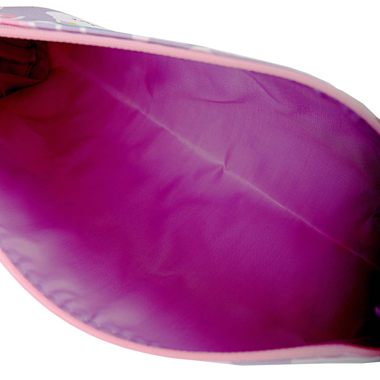 Стильная косметичка на молнии не оставит равнодушной ни одну маленькую модницу. Вместительная сумочка украшена изображениями единорогов и представлена в трех цветах — сиреневом, мятно-голубом и розовом.