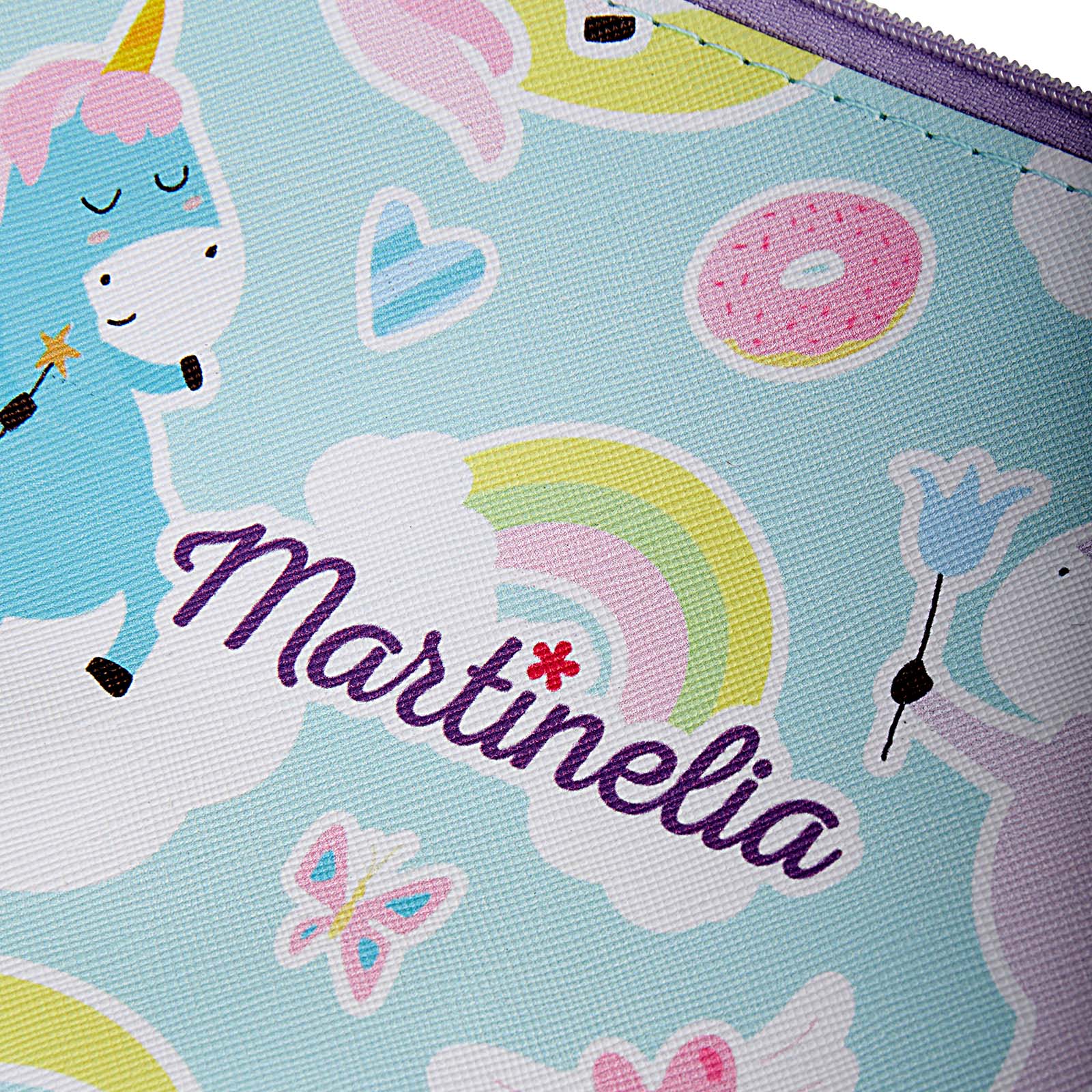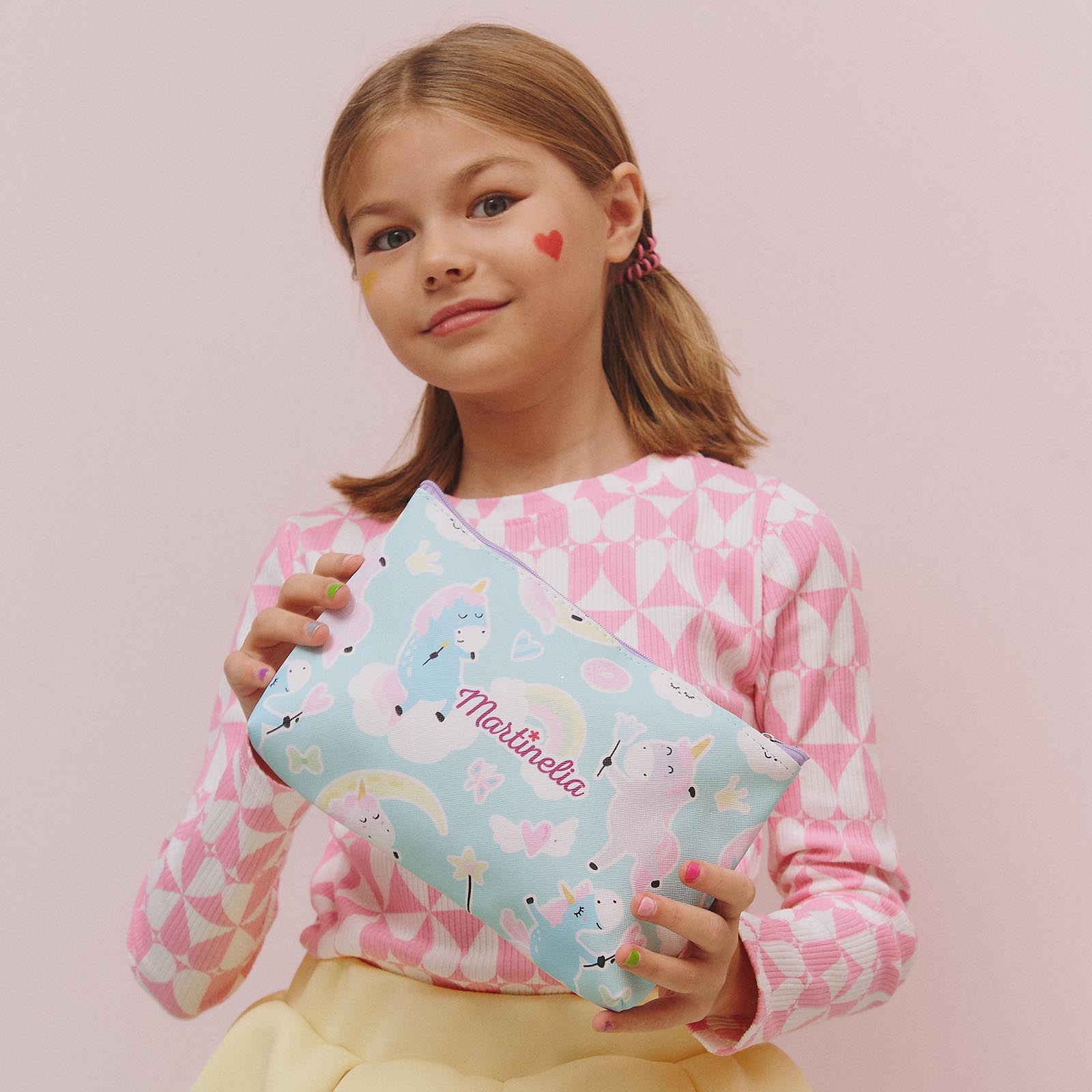 Стильная косметичка на молнии не оставит равнодушной ни одну маленькую модницу. Вместительная сумочка украшена изображениями единорогов и представлена в трех цветах — сиреневом, мятно-голубом и розовом.