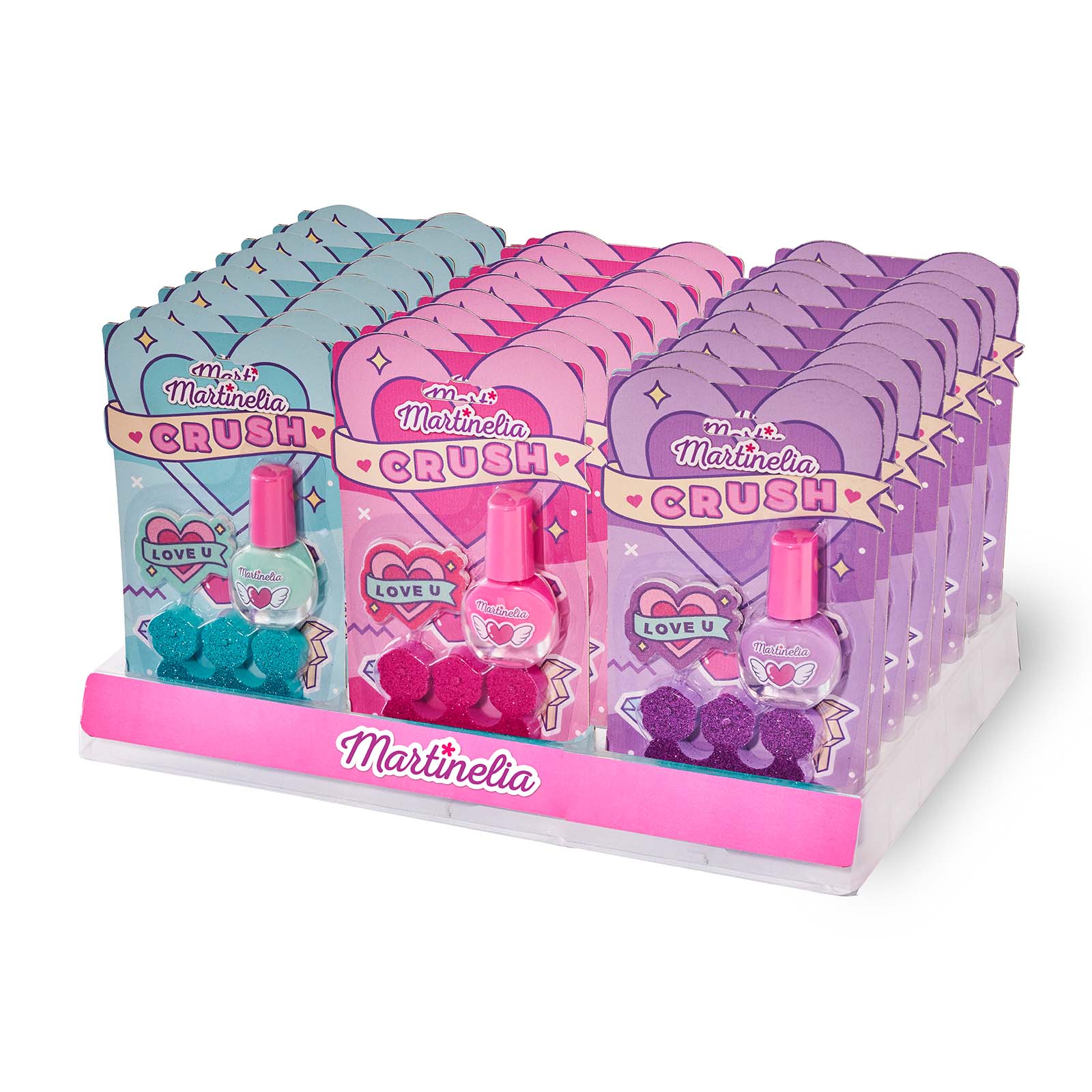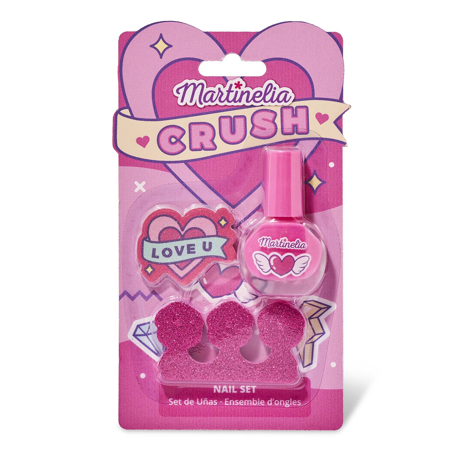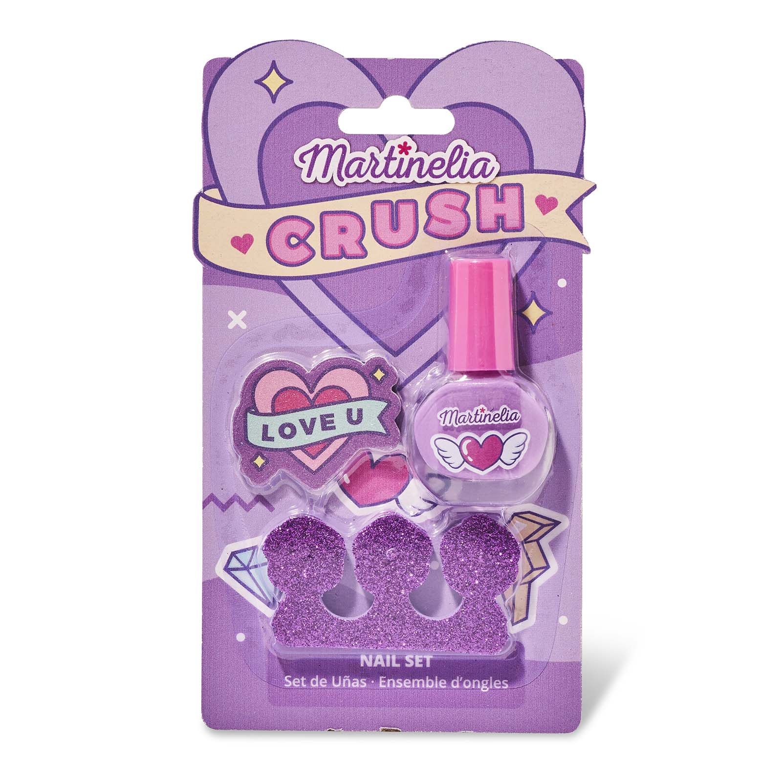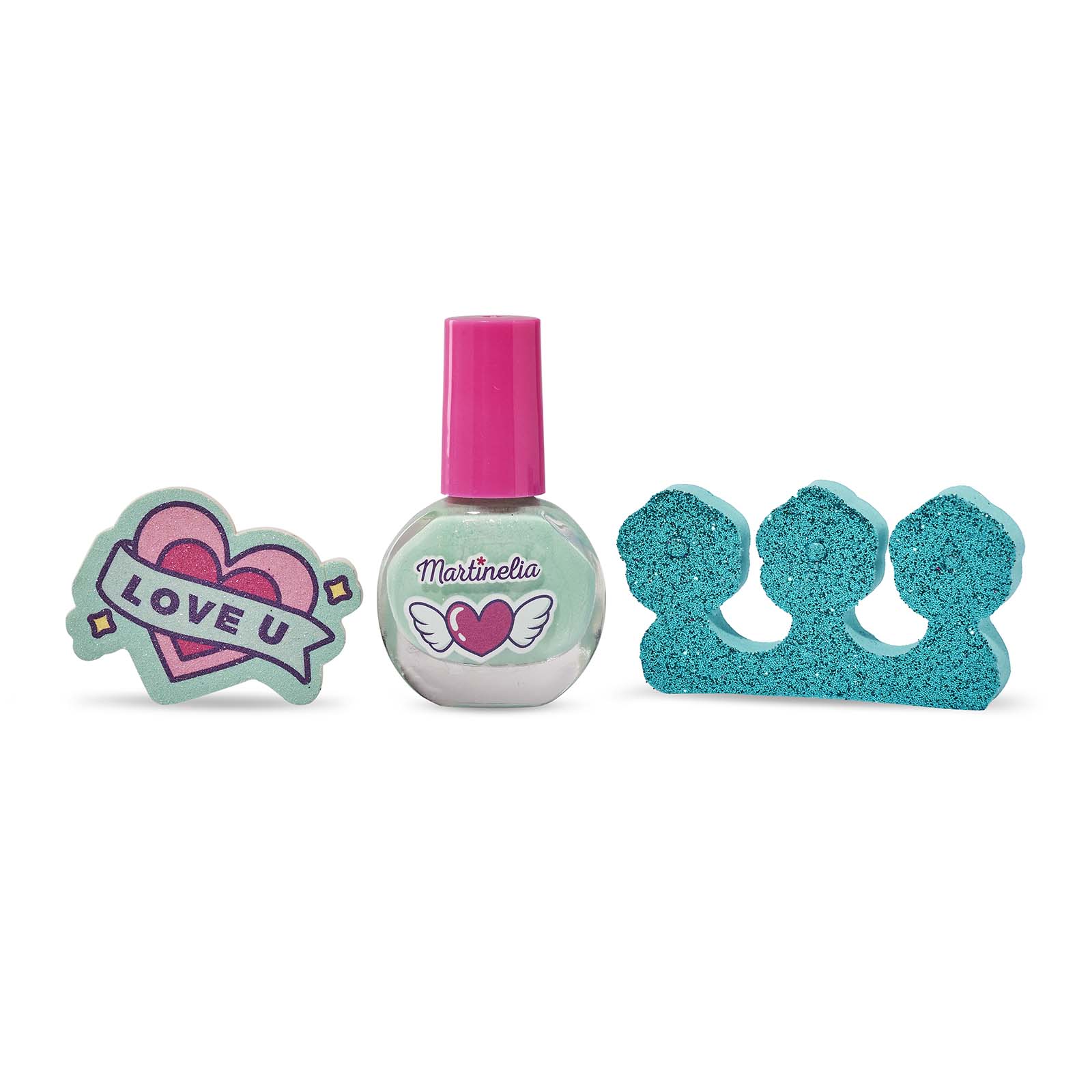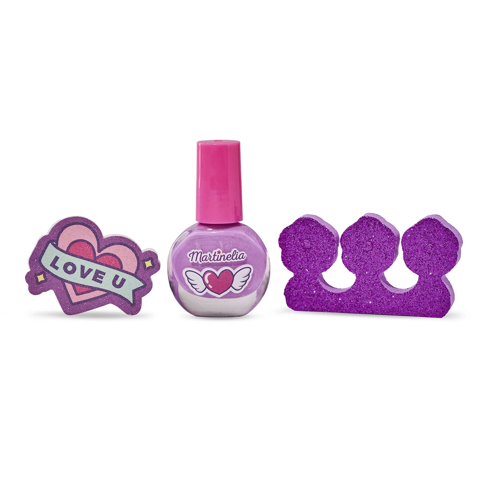 Все средства Martinelia разработаны специально для детей. Разделитель изготовлен из мягкого материала, который не царапает кожу. Пилочка также мягкая и выполнена в виде красочного сердечка. Лак легко наносится на ногти и так же легко смывается водой.