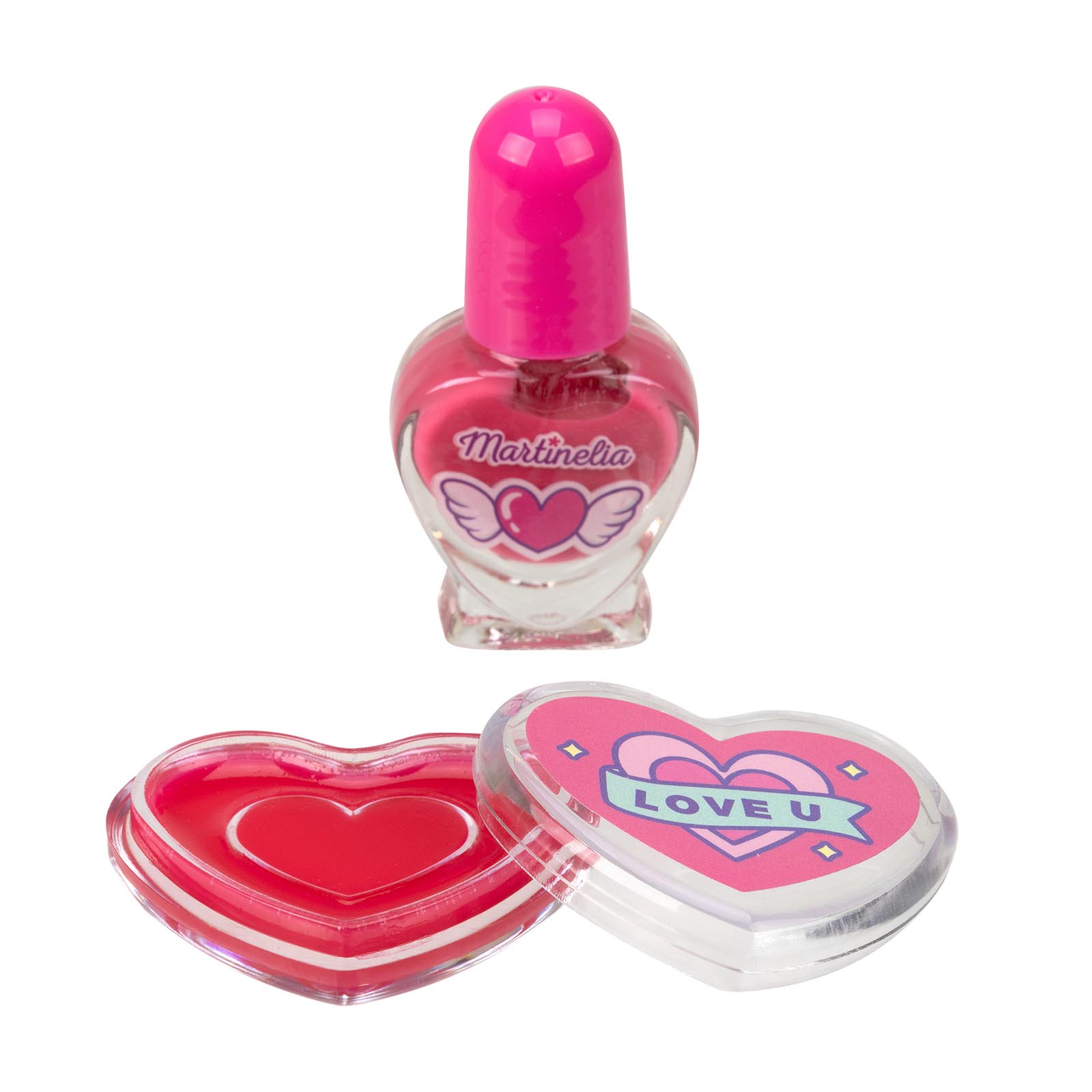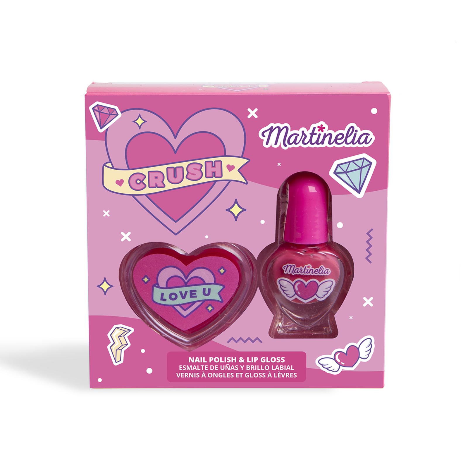 Мини-набор детской косметики Martinelia Crush станет отличным подарком для любой девочки, которая осваивает азы макияжа и маникюра. В набор входят два средства: бальзам для губ и лак для ногтей одинакового оттенка. Флакончики средств выполнены в виде сердечек и украшены рисунками, что сразу понравится юной моднице. В линейку входит три оттенка: розовый, фиолетовый и зеленый.