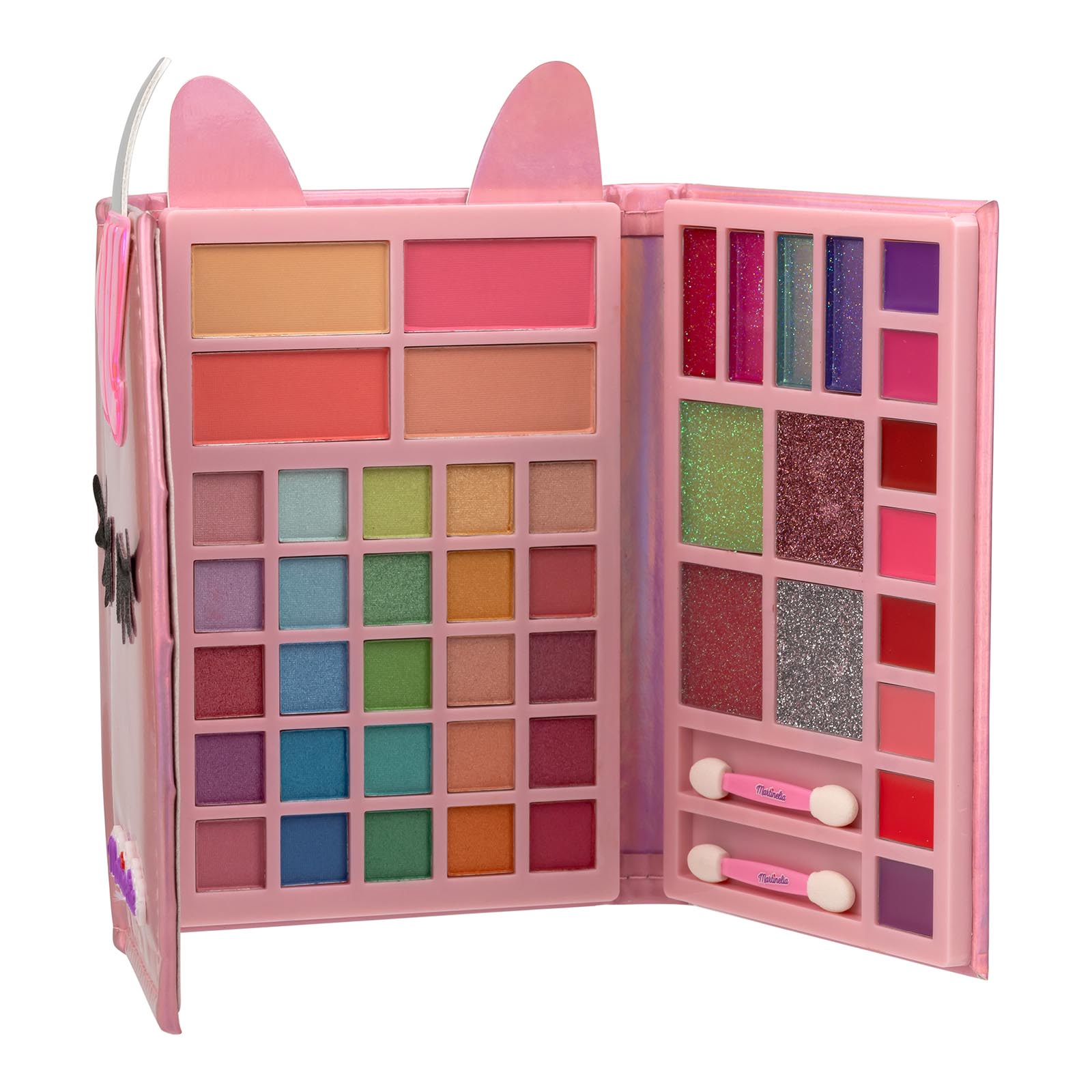 Набор косметики Martinelia Little Unicorn ― это лучший подарок для девочки, которая постигает азы макияжа. В компактном кошелечке в виде милого единорога спрятался целый набор сокровищ. Здесь мы найдем 25 оттенков сухих теней для век, от пастельных до ярких, 4 оттенка кремовых теней, 4 оттенка румян, 6 оттенков бальзама для губ, а также 2 кисточки и двойной аппликатор для удобного нанесения. С таким богатством юная модница сможет каждый день экспериментировать с образом, проявляя свою индивидуальность и творческое начало.