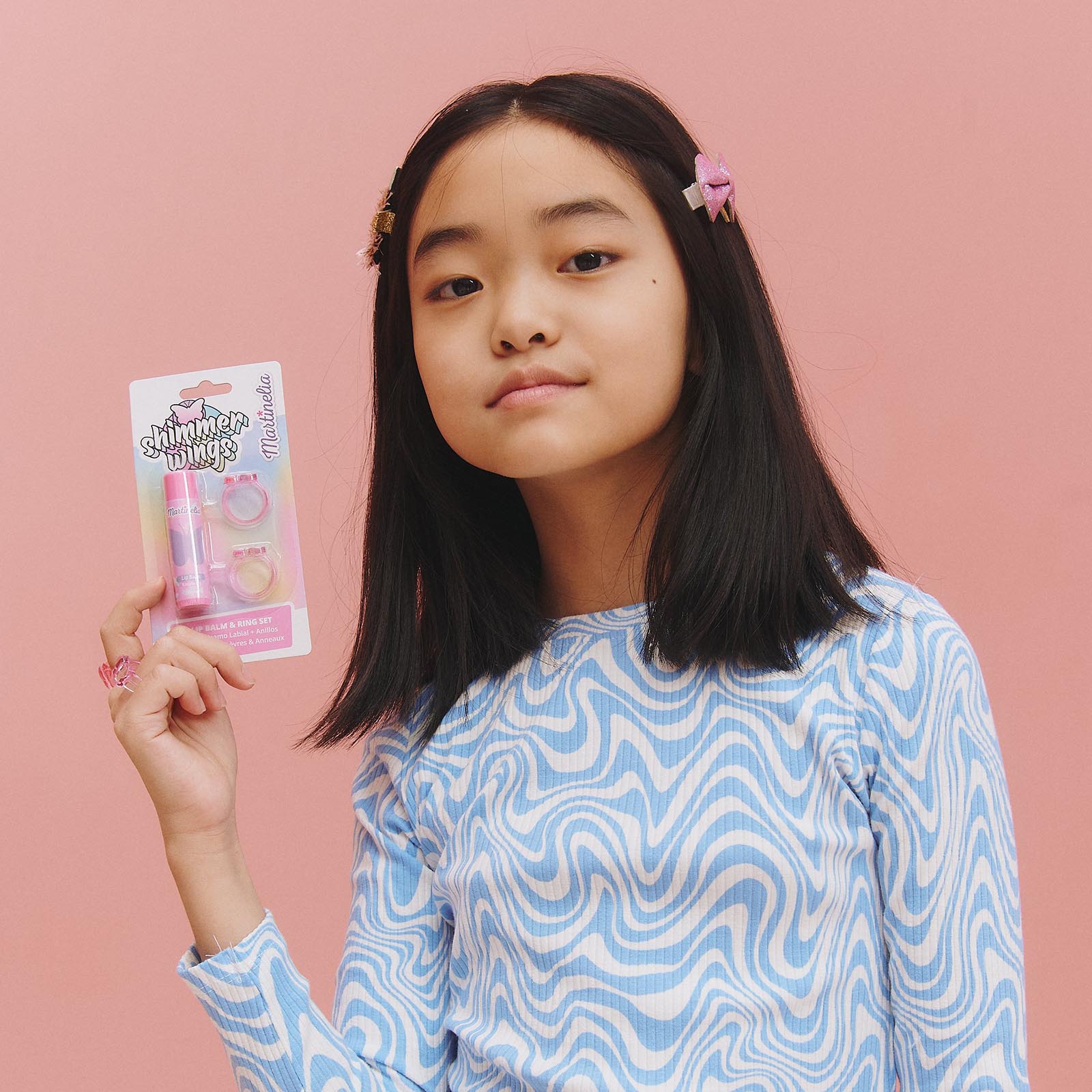 Бальзам для губ с набором колец Martinelia создан для юных модниц, которые любят стильные аксессуары. Ухаживающий бальзам сказочного розового оттенка с ароматом малины позаботится о нежной коже губ.