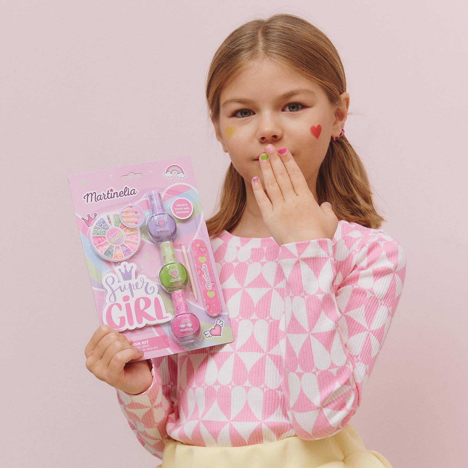 С набором для маникюра Super Girl девочка научится ухаживать за ногтями и делать аккуратный маникюр. В набор входят 3 лака разных оттенков, различные аксессуары для украшения, пилочка и апельсиновая палочка для кутикулы.