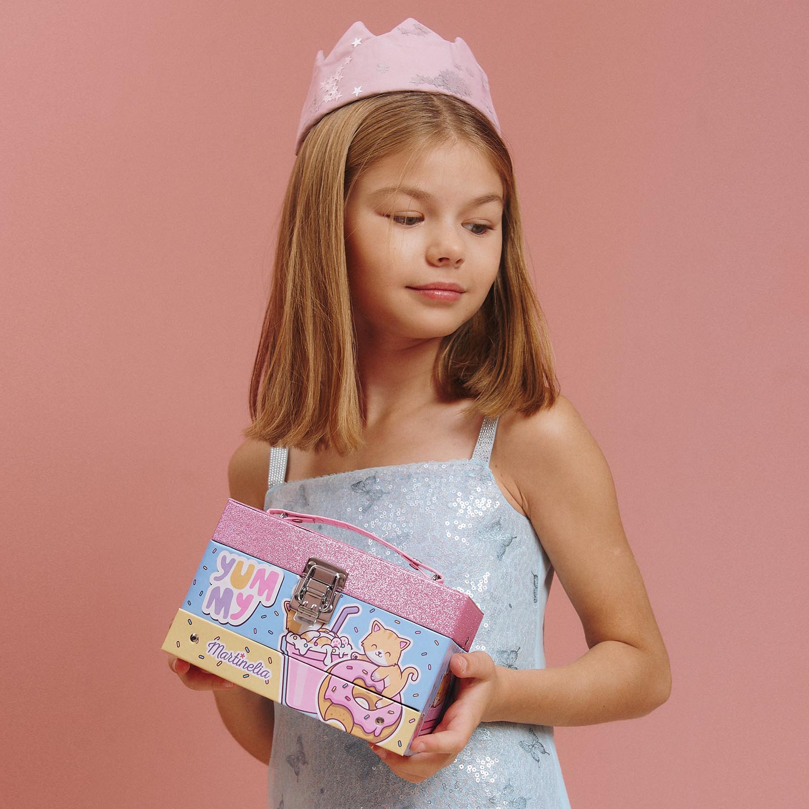 Сундук сияющих сокровищ Martinelia Yummy создан для юных любительниц блистать всегда и везде! В набор входят 14 оттенков теней для век, чтобы создавать яркие образы, 6 блесков для губ сочных фруктовых оттенков, 2 ухаживающие помады и 2 аппликатора, чтобы аккуратно наносить средства. А еще – пилочка для ногтей и разделитель для педикюра.