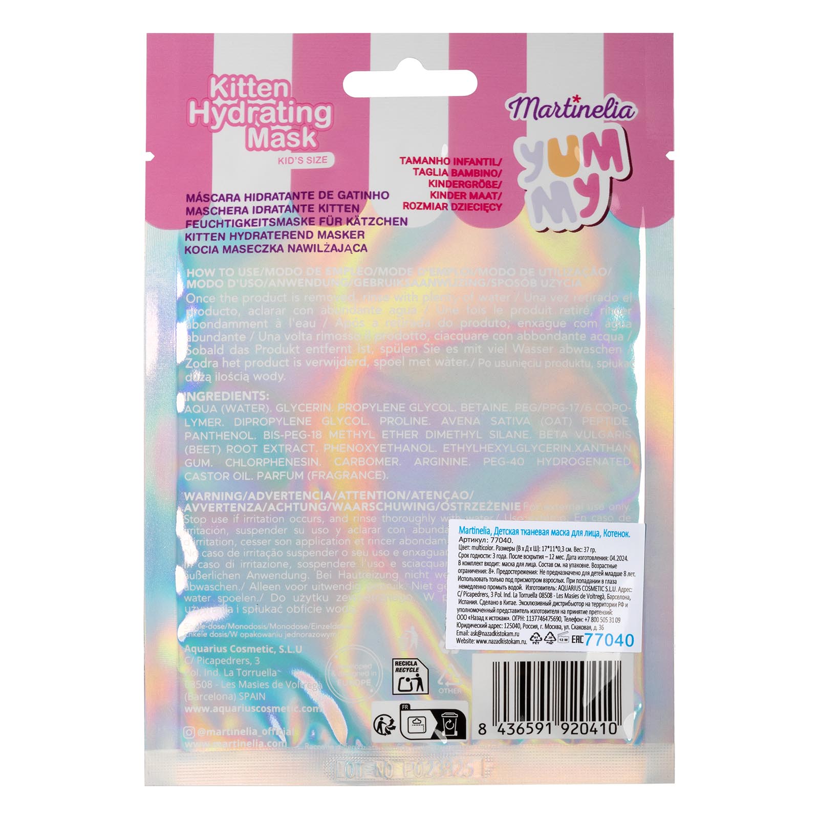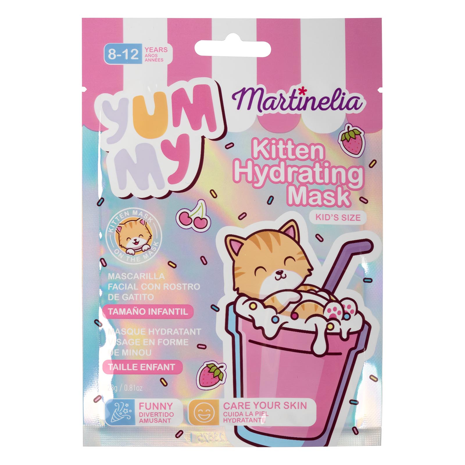 Детская тканевая маска для лица Martinelia Yummy ― это то, с чем девочка сможет почувствовать себя такой же модницей как мама. Маска пропитана безопасными натуральными компонентами, которые бережно ухаживают за чувствительной детской кожей лица, увлажняют и питают её. А милый дизайн в виде кошачьей мордочки превратит уход за собой в веселую игру.